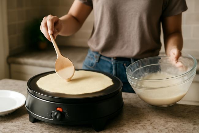 - Material e durabilidade: Chapas de ferro fundido ou antiaderentes mandam bem, pois facilitam a limpeza e deixam o crepe dourado na medida.